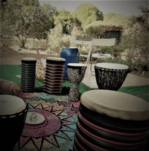 Un círculo de tambores es un encuentro en el que las personas que lo componen (aunque no tengan ninguna experiencia musical), van familiarizándose y generando ritmos, hasta llegar a un punto en la sesión en el que tod@s, son parte fundamental del círculo, ya no solo por su juego con el tambor, también por las aportaciones creativas de cada participante al círculo.